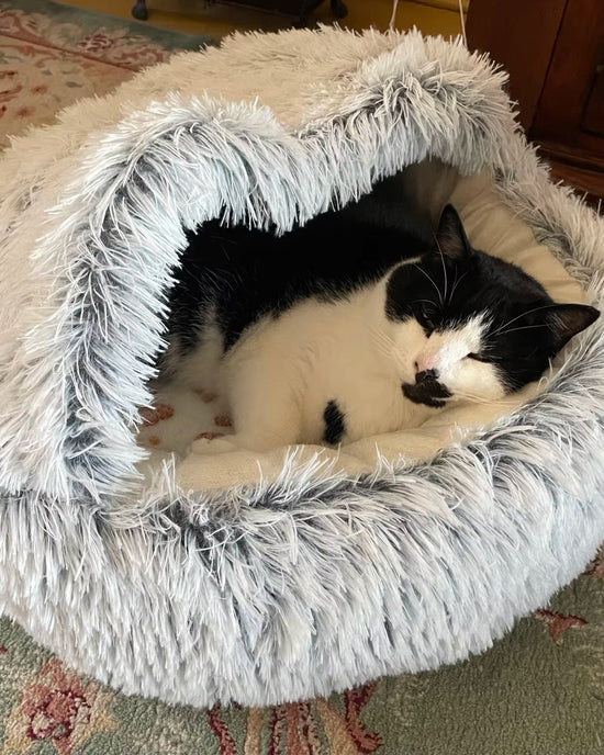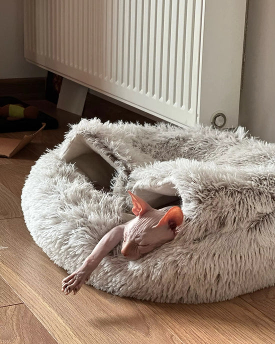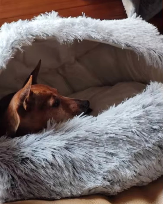 Designet for optimal komfort: Hundehulesengen er laget av myke og plysjaktige materialer, som gir et varmt og koselig fristed for kjæledyret ditt å kose seg i, slappe av og lade opp. Interiøret er laget av ultramykt og hypoallergenisk stoff for å holde din firbente venn trygg og komfortabel.