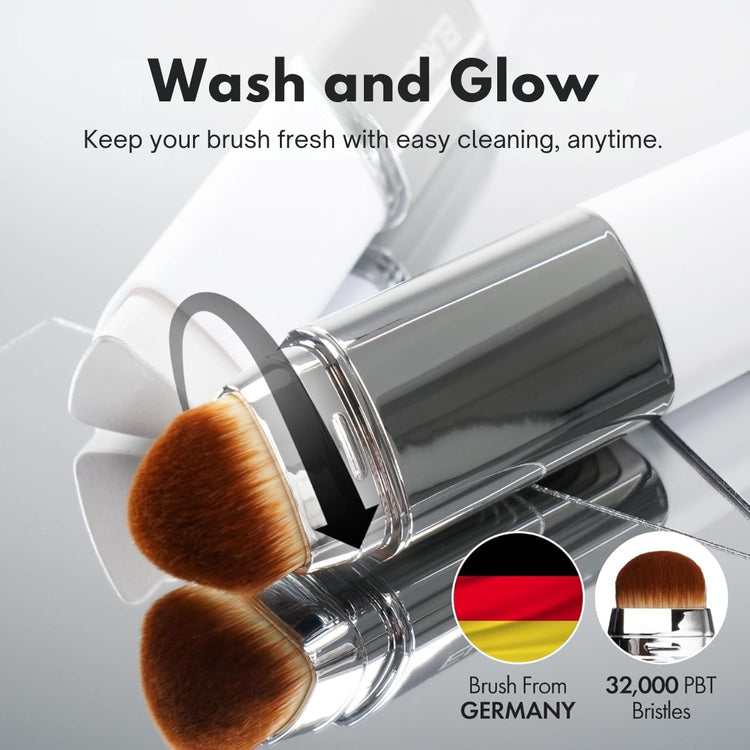 The built-in brush features 32,000 ultra-fine bristles, designed to buff product deep into pores and fine lines for a velvet-smooth, airbrushed finish. Silky, even coverage that melts into skin with zero cakiness.