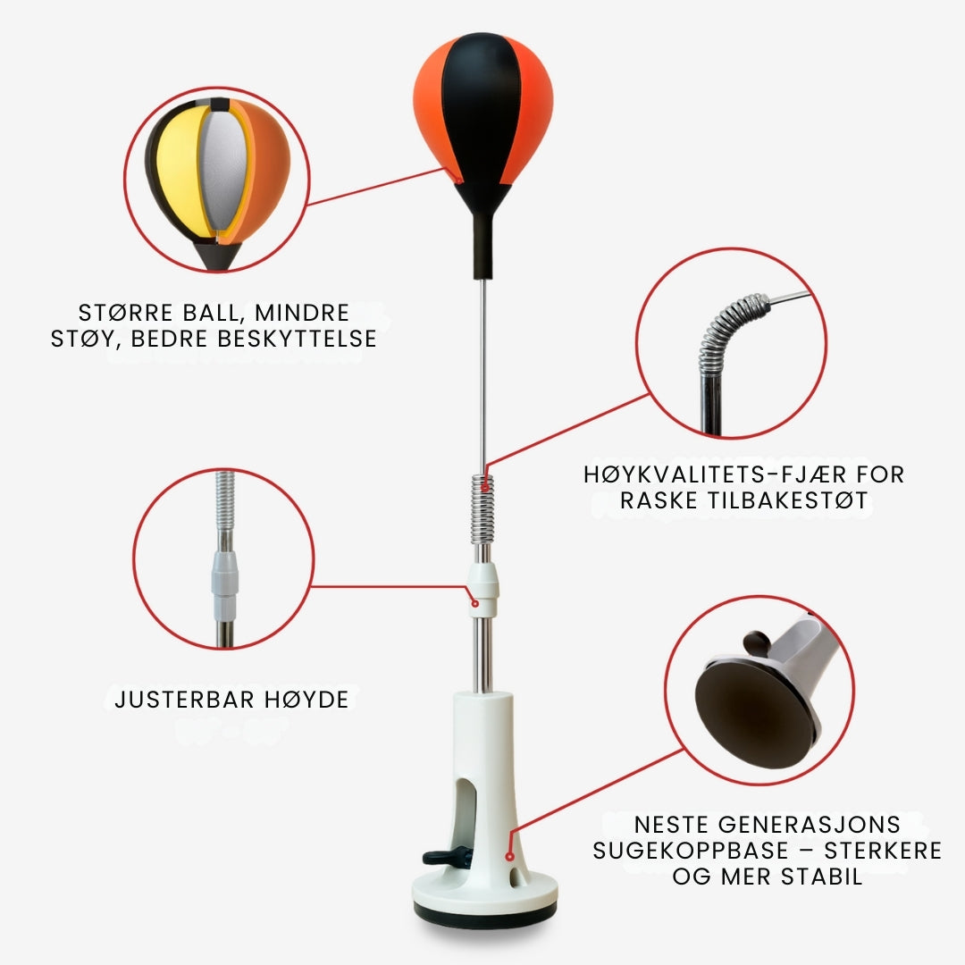 Gjør hjemmet ditt om til en energisk treningssone på bare 15 minutter om dagen! Smasher™ Boksball gir deg mer enn bare trening – den hjelper deg å slippe stress, forbrenne kalorier og få mer energi. Samtidig bygger du ekte styrke, skjerper refleksene og holder kroppen smidig – helt uten gym.